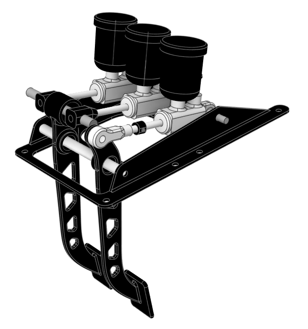 Designed specifically for racing it uses CNC machined alloy master cylinders with spherical bearings and linear guides so the force is always applied in line with the cylinder giving improved feel and reduced weight. Our custom frame is laser cut steel and mounts directly to the original mountings with no additional drilling required.